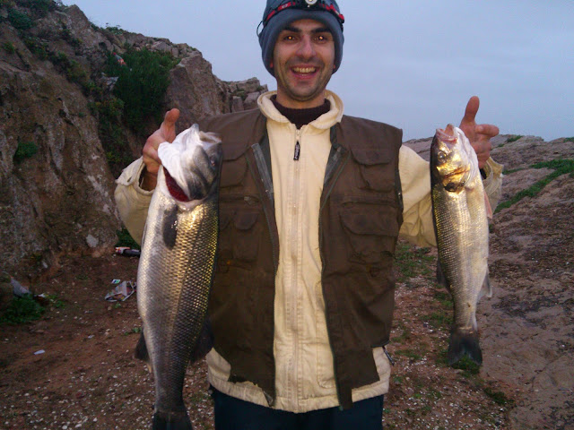 Boas pessoal, o amigo Manel foi ao mesmo spot da última publicação e voltou a faturar com um peixe de qualidade, também o amigo Rui, colega de trabalho do Manel, ferrou um de qualidade que lhe deu muito trabalho ao ficar o peixe no cesto preso nas pedras, tiveram que esperar pelo dia e que a maré vazá-se, depois já com um bocado de luz do dia e com a ajuda do Bruno lá conseguiram tirar o cesto com o peixe, o cesto ficou todo empenado, ainda tiraram duas bailas e um robalote mais pequeno. Abraço e bons disparos...