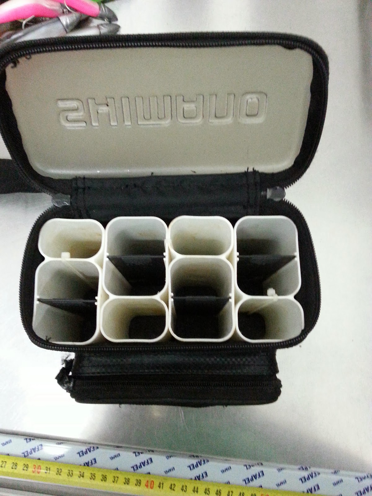 Tenho uma bolsa da shimano que pensei em transformá-la para meter vinis como só tinha 12 divisões agora vai passar a ter 25 divisões sempre leva mais.